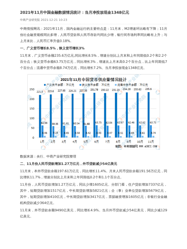 【中商产业研究院】【20211221】2021年11月中国金融数据情况统计-5页 行业研究