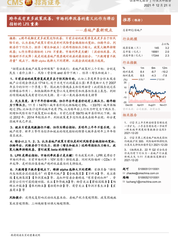 【海通证券】【20211221】房地产最新观点:跨年或有更多政策改善,市场利率改善的意义比作为滞后指标的LPR重要-2页 证券期货研究报告