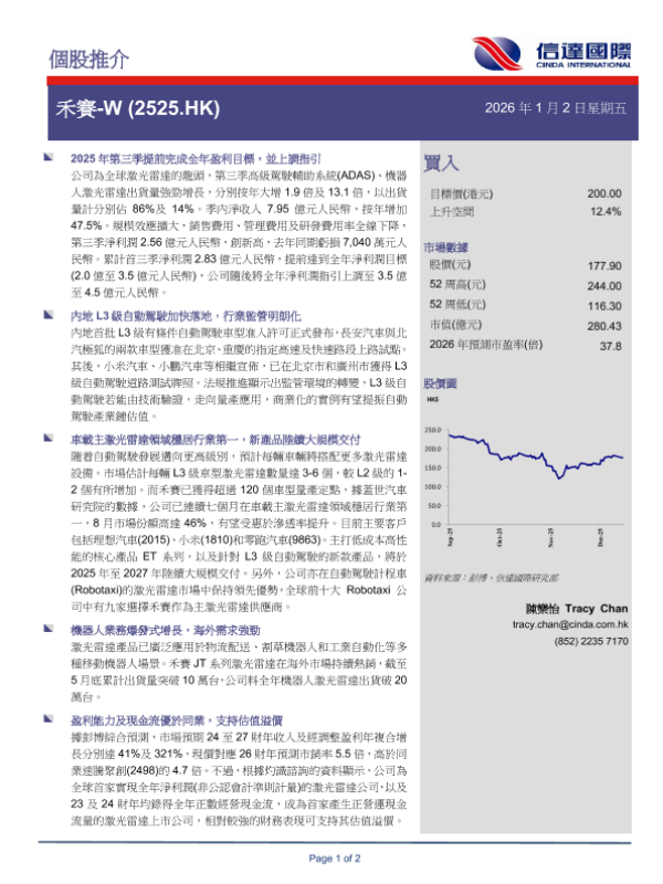 【信达国际研究部】【202601】禾赛-W(2525.HK) 个股推介-2页 证券期货研究报告