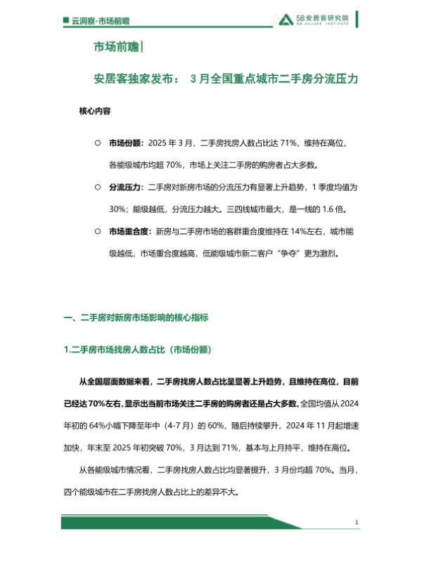 【安居客】【20250411】3月全国重点城市二手房分流压力-7页 市场调研