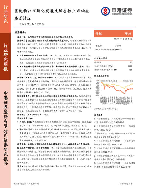 【申港证券】【20230205】物业管理行业研究周报:医院物业市场化发展及综合性上市物企布局情况-12页 行业研究