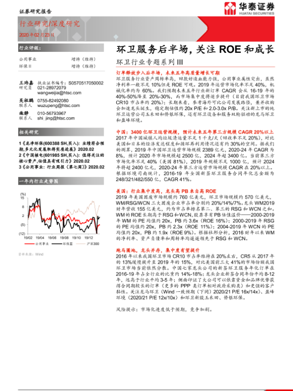 【华泰证券】【20200223】环卫服务后半场,关注ROE和成长-39页 行业研究