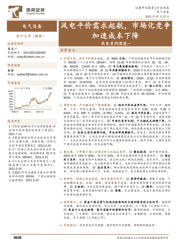 【德邦证券】【20210727】风电系列深度一:风电平价需求起航,市场化竞争加速成本下降-22页 行业研究