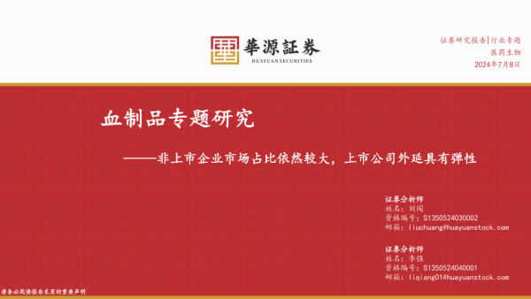【华源证券】【20240708】2024-07-08-血制品专题研究-非上市企业市场占比依然较大-上市公司外延具有弹性-51页 行业研究