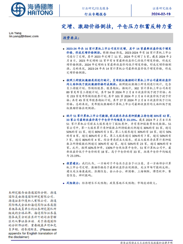 【海通国际】【20240219】信息服务行业专题报告:定增、激励价格倒挂,平仓压力积蓄反转力量-18页 行业研究