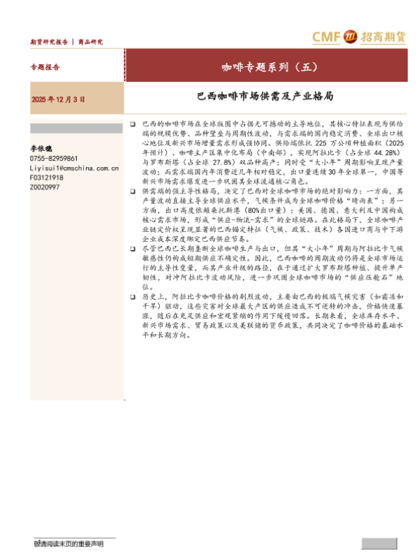 【招商期货】【202512】巴西咖啡市场供需及产业格局-17页 证券期货研究报告