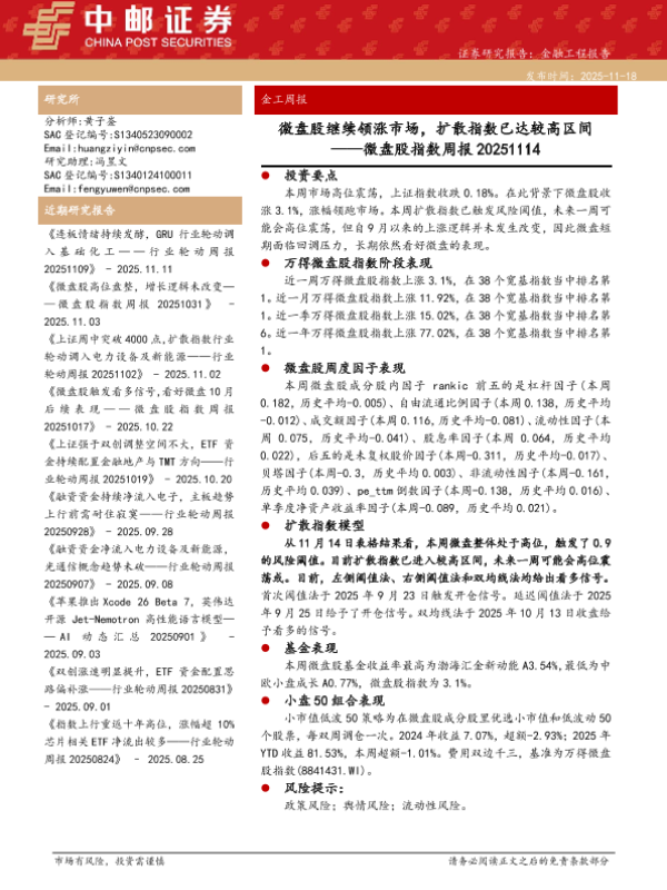 【中邮证券】【202511】微盘股继续领涨市场,扩散指数已达较高区间-28页 证券期货研究报告