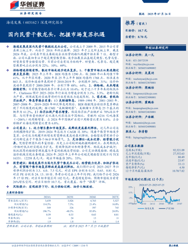 【华创证券】【202507】海通发展(603162)深度研究报告:国内民营干散龙头,把握市场复苏机遇-29页 证券期货研究报告