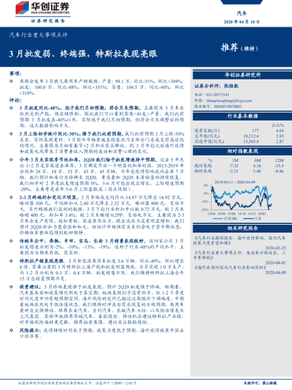 【华创证券】【20200410】20200410-华创证券-汽车行业重大事项点评:3月批发弱、终端强,特斯拉表现亮眼-14页 行业研究