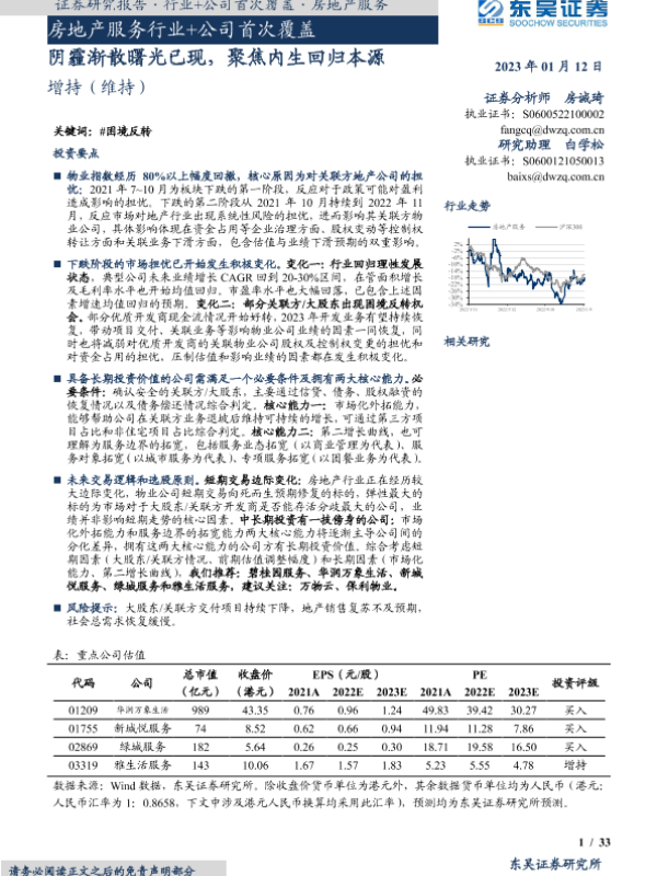 【东吴证券】【20230112】房地产服务行业+公司首次覆盖:阴霾渐散曙光已现,聚焦内生回归本源-42页 行业研究