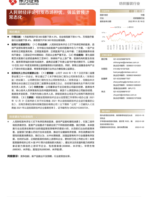 【东方证券】【20220119】20220119-东方证券-纺织服装行业周报:人民财经评论引发市场担忧,强监管预计常态化-6页 行业研究