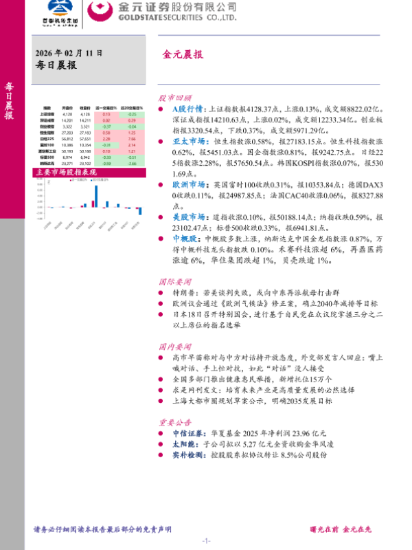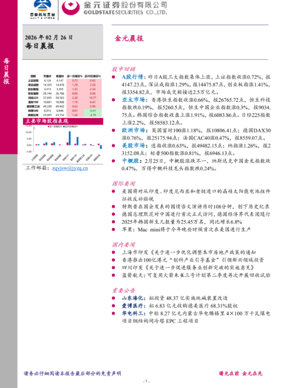 【金元证券】【202602】2026年 02月 26日每日晨报-6页 证券期货研究报告