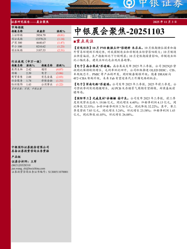 【中银证券】【202511】中银晨会聚焦-20251103-7页 会议纪要