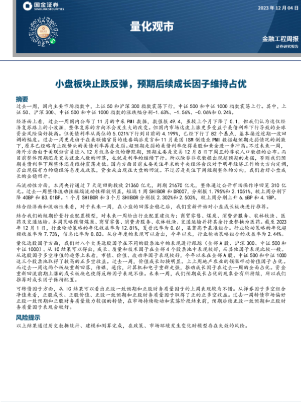 【国金证券】【20231204】量化观市:小盘板块止跌反弹,预期后续成长因子维持占优-14页 行业研究