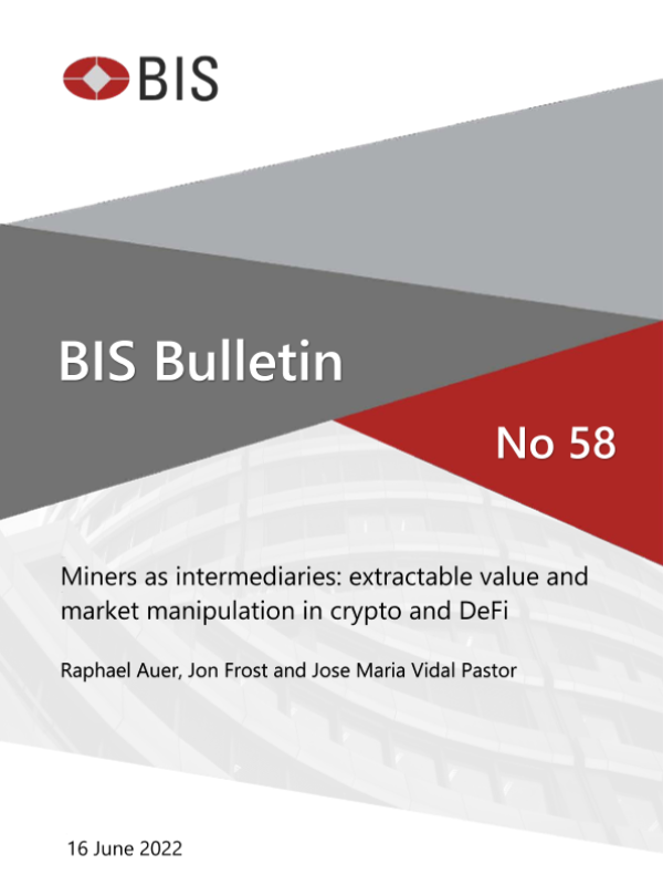 【Bank for International Settlements】【20220616】Miners as intermediaries extractable value and market manipulation in crypto and DeFi-8页 行业研究