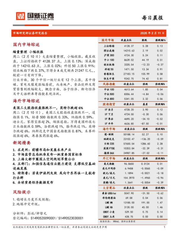 【国新证券】【202602】每日晨报-7页 证券期货研究报告