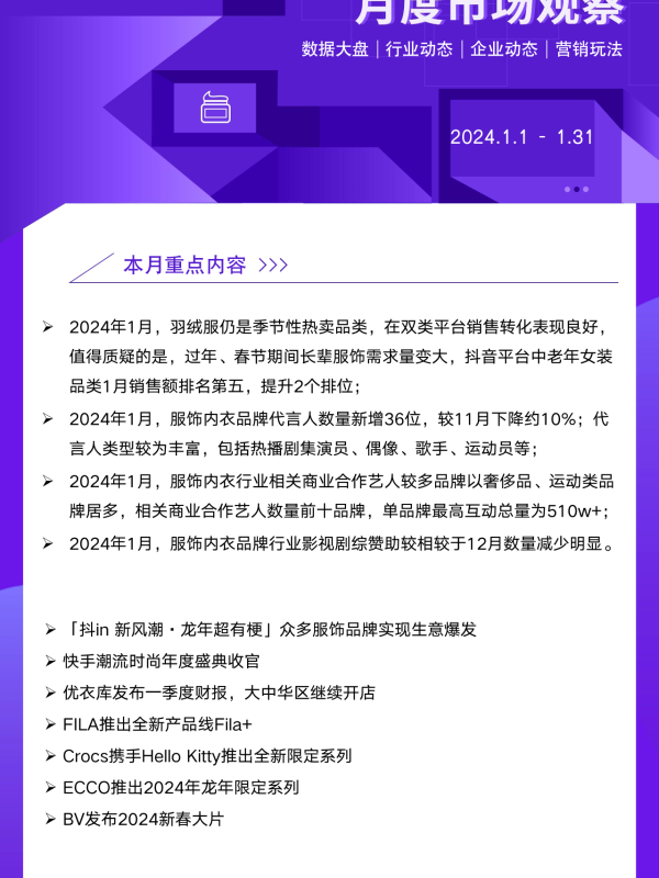 【艺恩ENDATA】【202401】2024年1月服饰行业市场月报-9页 市场调研