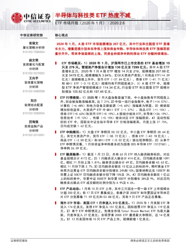 【中信证券】【20200206】ETF市场月报(2020年1月):半导体与科技类ETF热度不减-27页 行业研究