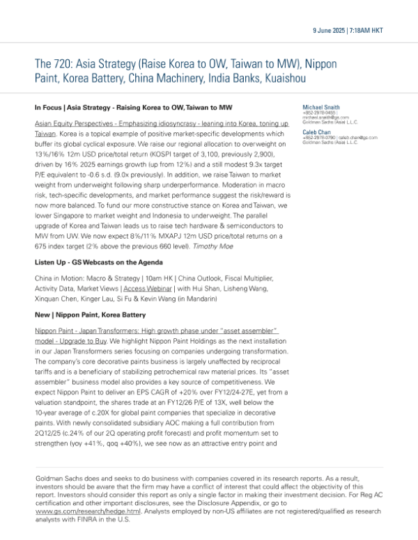 【Goldman Sachs】【20250609】亚洲策略-将韩国评级上调至增持,台湾上调至中性-10页 宏观策略