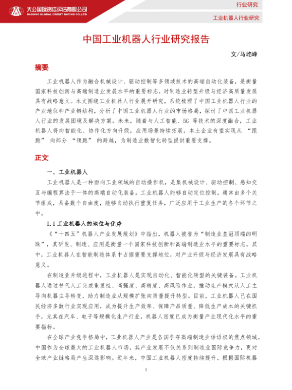 【大公国际】【2025】中国工业机器人行业研究报告-12页 行业研究