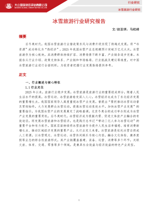【大公国际】【2025】冰雪旅游行业研究报告-7页 行业研究