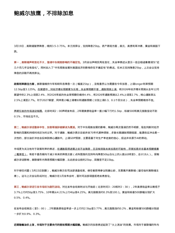 【华西证券】【202603】鲍威尔放鹰,不排除加息-5页 证券期货研究报告