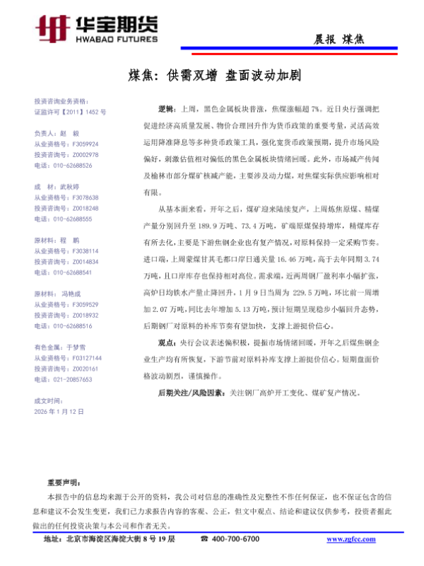 【华宝期货】【202601】煤焦_供需双增_盘面波动加剧-1页 证券期货研究报告