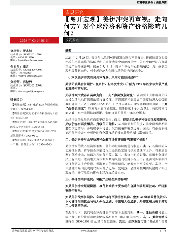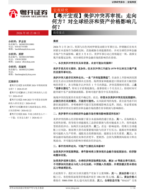 【粤开证券】【202603】【粤开宏观】美伊冲突再审视:走向何方?对全球经济和资产价格影响几何?-14页 证券期货研究报告