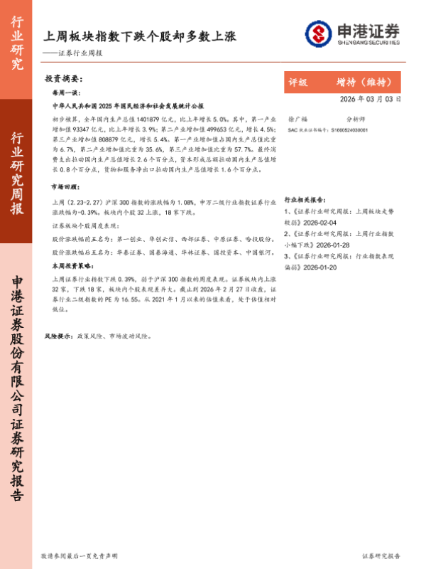 【申港证券】【202603】上周板块指数下跌个股却多数上涨——证券行业周报-10页 证券期货研究报告