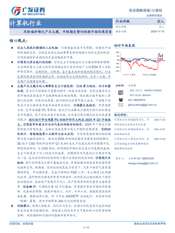 【广发证券】【20241110】计算机行业投资策略周报:风险偏好催化产业主题、中短期走势仍依赖市场环境因素-11页 行业研究