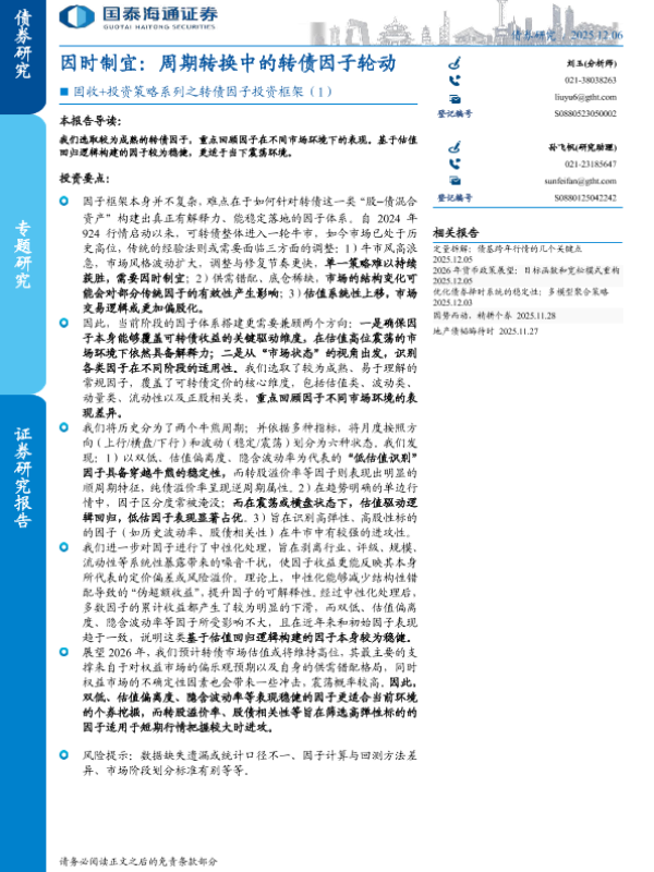 【国泰海通证券】【202511】因时制宜:周期转换中的转债因子轮动-12页 证券期货研究报告