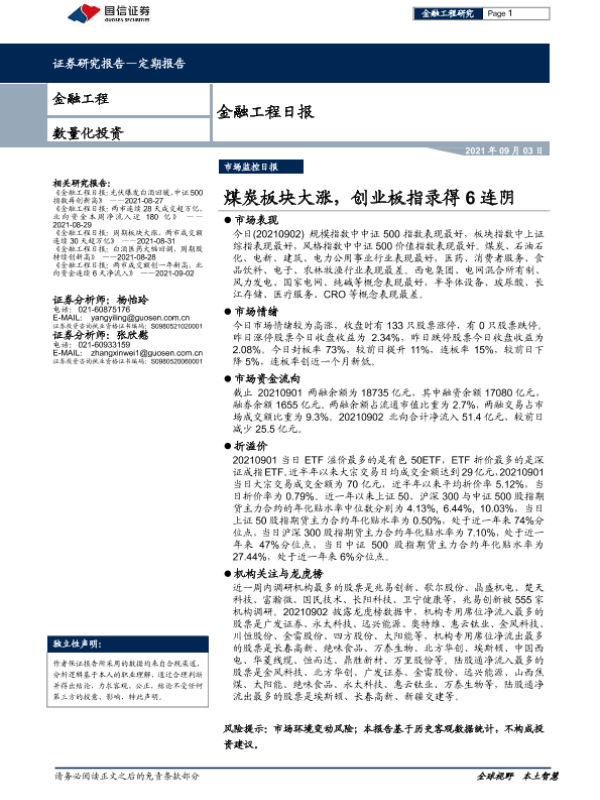 【国信证券】【20210903】煤炭板块大涨,创业板指录得6连阴-16页 行业研究