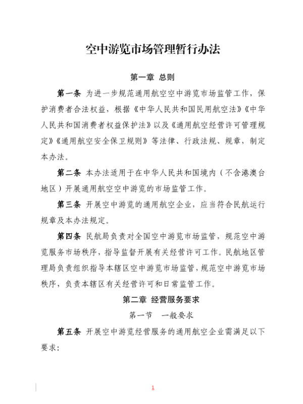 【民航局】【2025】空中游览市场管理暂行办法-6页 政策文件