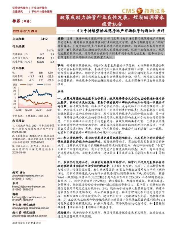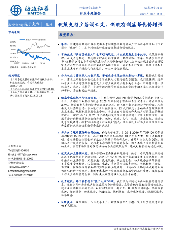 【海通证券】【20210729】关于持续整治规范房地产市场秩序的通知点评:政策或助力物管行业良性发展,短期回调带来投资机会-2页 行业研究