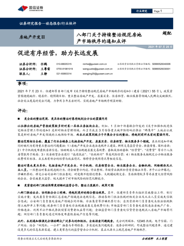 【国信证券】【20210725】八部门关于持续整治规范房地产市场秩序的通知点评:促进有序经营,助力长远发展-7页 行业研究