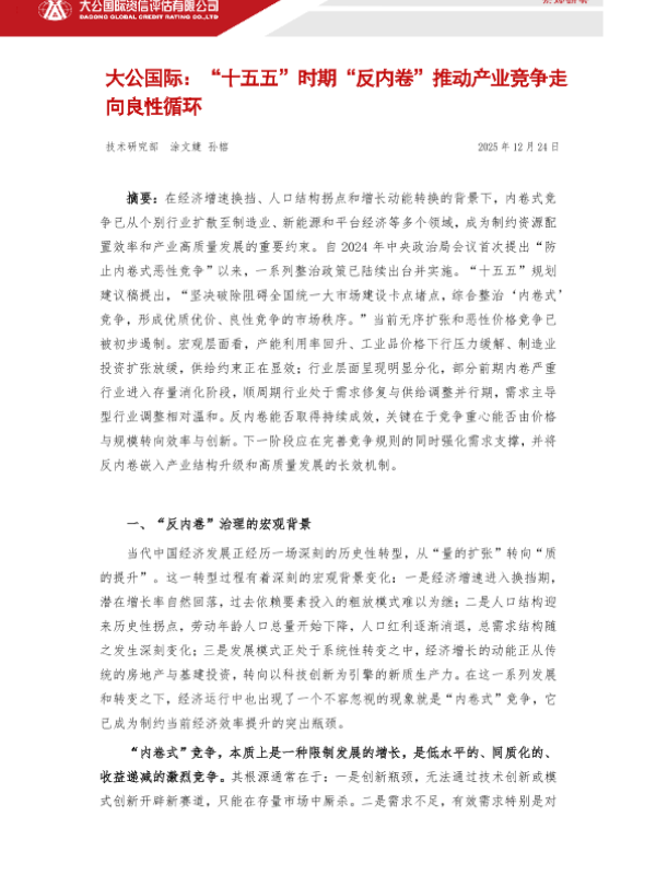 【大公国际】【202512】“十五五”时期“反内卷”推动产业竞争走向良性循环-6页 宏观策略