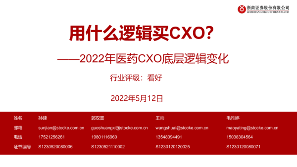 【浙商证券】【20220512】2022年医药行业CXO底层逻辑变化:用什么逻辑买CXO?-31页 行业研究