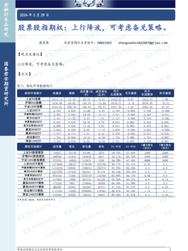 【国泰君安期货】【20240229】股票股指期权:上行降波,可考虑备兑策略。-15页 行业研究