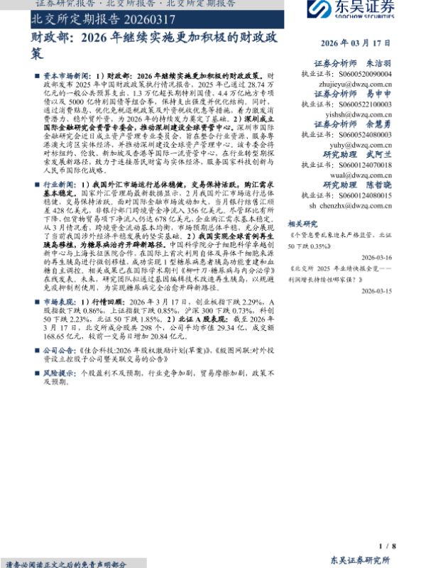 【东吴证券】【202603】十四届全国人大四次会议开幕,北证50上涨1.12%-8页 证券期货研究报告