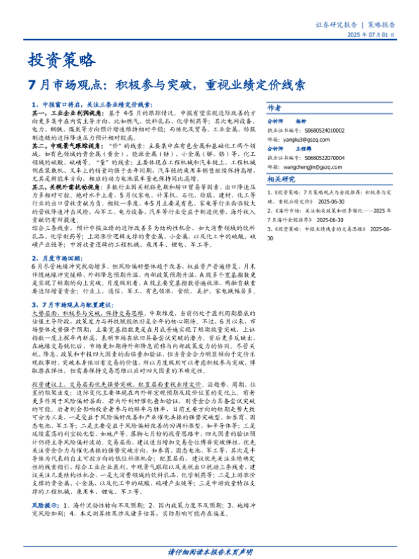 【国盛证券】【20250701】7月市场观点:积极参与突破,重视业绩定价线索-11页 证券期货研究报告