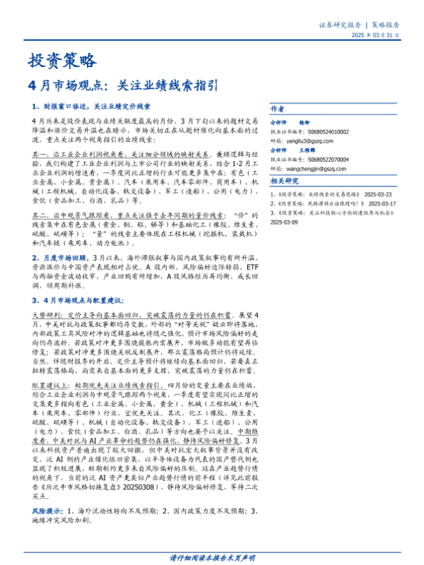 【国盛证券】【20250331】4月市场观点:关注业绩线索指引-10页 证券期货研究报告