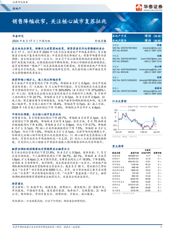 【华泰证券】【20240617】销售降幅收窄,关注核心城市复苏征兆-16页 行业研究