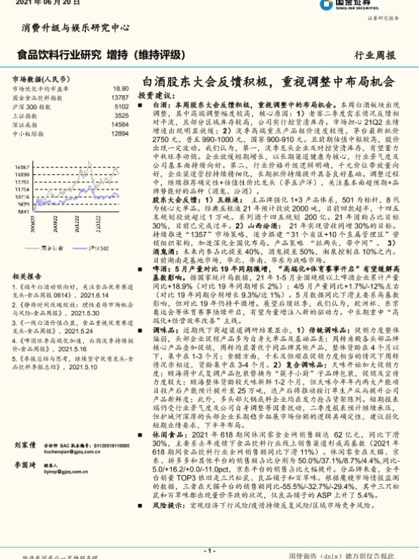 【国金证券】【20210620】20210620-国金证券-食品饮料行业研究:白酒股东大会反馈积极,重视调整中布局机会-17页 行业研究