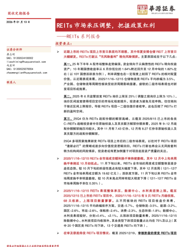 【华源证券】【202512】REITs市场承压调整,把握政策红利——REITs系列报告-15页 证券期货研究报告
