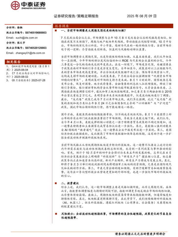 【中泰证券】【202508】当前市场调整是大周期见顶还是结构性切换?-11页 证券期货研究报告