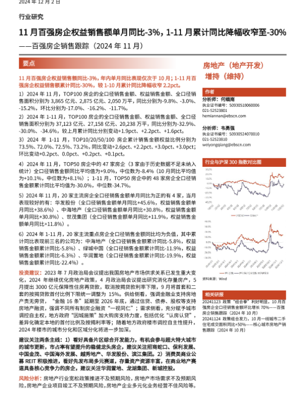 【光大证券】【20241202】百强房企销售跟踪(2024年11月)-11页 行业研究