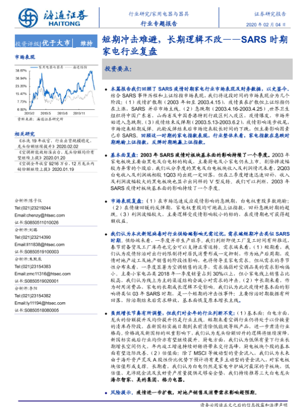 【海通证券】【20200204】20200204-海通证券-家用电器与器具行业专题报告:SARS时期家电行业复盘-短期冲击难避,长期逻辑不改-13页 行业研究