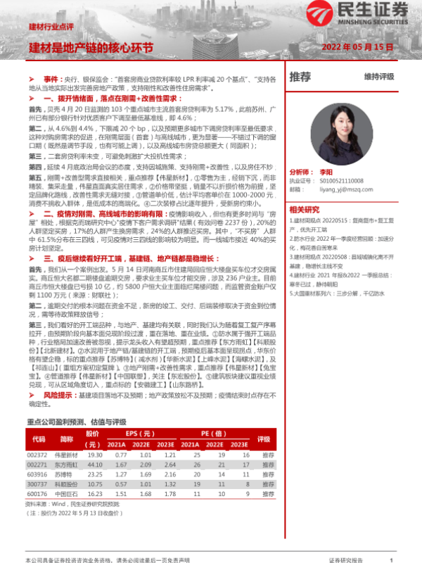【民生证券】【20220515】建材行业点评:建材是地产链的核心环节-2页 行业研究