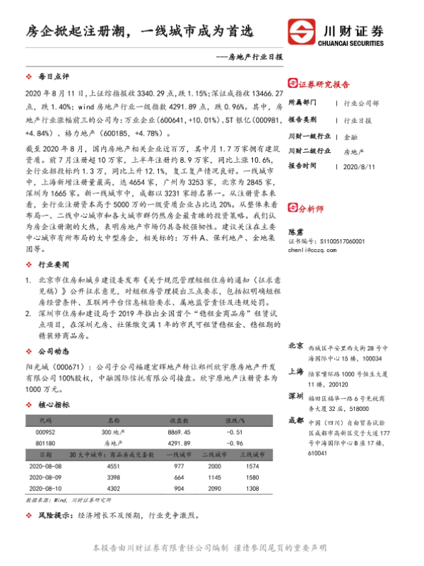 【川财证券】【20200811】房企掀起注册潮,一线城市成为首选-3页 证券期货研究报告