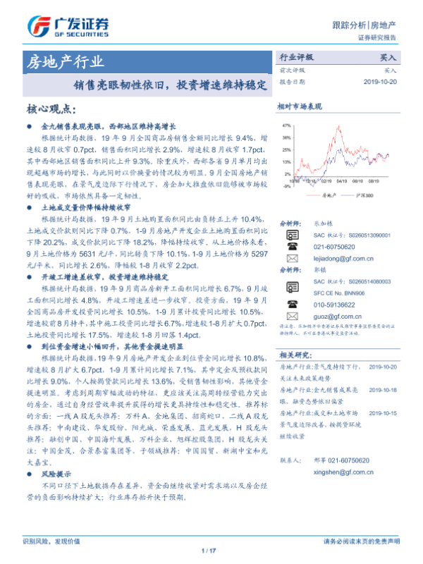 【广发证券】【20191020】房地产行业:销售亮眼韧性依旧,投资增速维持稳定-17页 行业研究